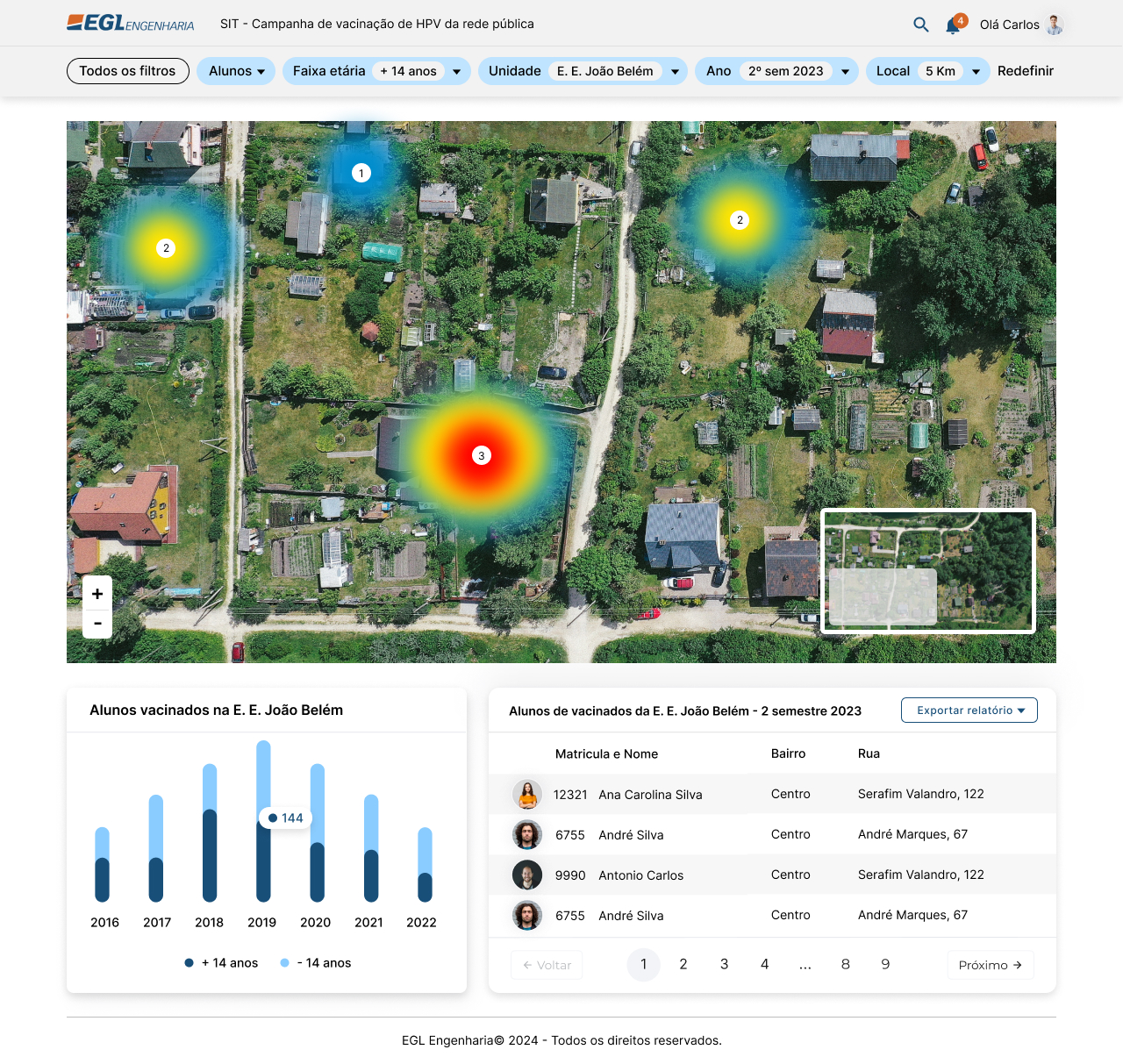 Neste projeto foi criado um CRM com login, filtro e visualização de mapa com informações de uma região selecionada para apoiar a secretária de saúde do município, para saber sobre os alunos passíveis de uma campanha de vacinação de HPV da rede pública.